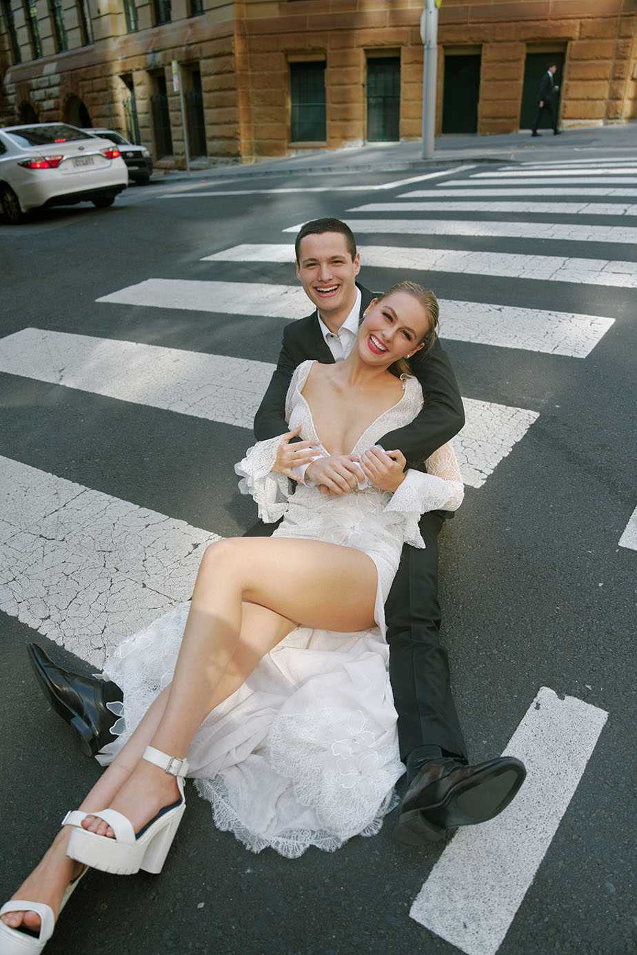 No fashion story is complete without the eye of a master photographer, and Aries Tao delivered in spades. Known for his ability to blend artistry with narrative, Aries transformed Sydney’s streets into a dynamic backdrop that perfectly complemented the grandeur of the Berta gowns.